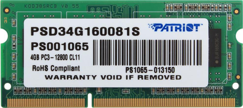 Оперативная память PATRIOT 4 GB SO-DIMM DDR3 1600 MHz (PSD34G160081S)