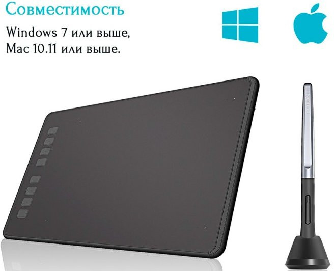 Комплектация: Графический планшет Пассивное перо/стилус Micro USB кабель Подставка для пера (8 наконечников внутри) Инструкция